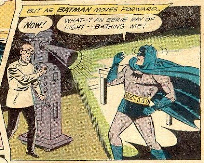 No, not the dreaded "eerie ray of light"! Well, before you know it, Batman has shrunk down to Oshkosh Bgosh size: